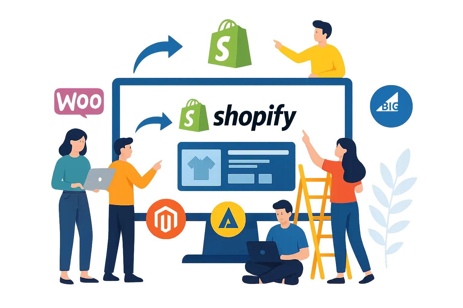 From WooCommerce, Magento, BigCommerce, or custom CMS to Shopify/Shopify Plus.